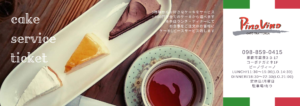 3種類からお好きなケーキをサービス ご来店時にPinoVinoクーポン画面を見せていただいた頂ければ、セットをご注文していただいたお客様に、3種類からお好きなケーキをサービスいたします。+100円で全てのケーキからお選びいただけます。テイクアウトではご利用できません。